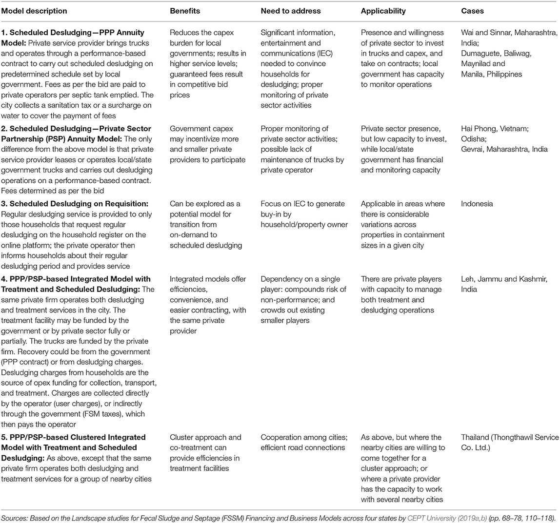 Low availability of vacuum trucks: In few cases, only one vacuum truck for the delivery of FS is available leading to over-burdening of the truck/owner for FS delivery. Through public private partnership (PPP), private providers can carry out desludging activity with their own trucks. This would performance-based contract and would reduce the capex burden on local government and improve the service.